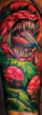 Leif's tattoos emphasize dynamic character concepts, heavy color saturation, and painstaking attention to detail. He also excels at bio-organica, cover-up, and repair.